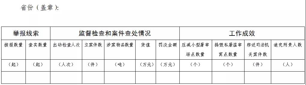嚴厲打擊生豬屠宰違法行為專項行動情況統(tǒng)計表