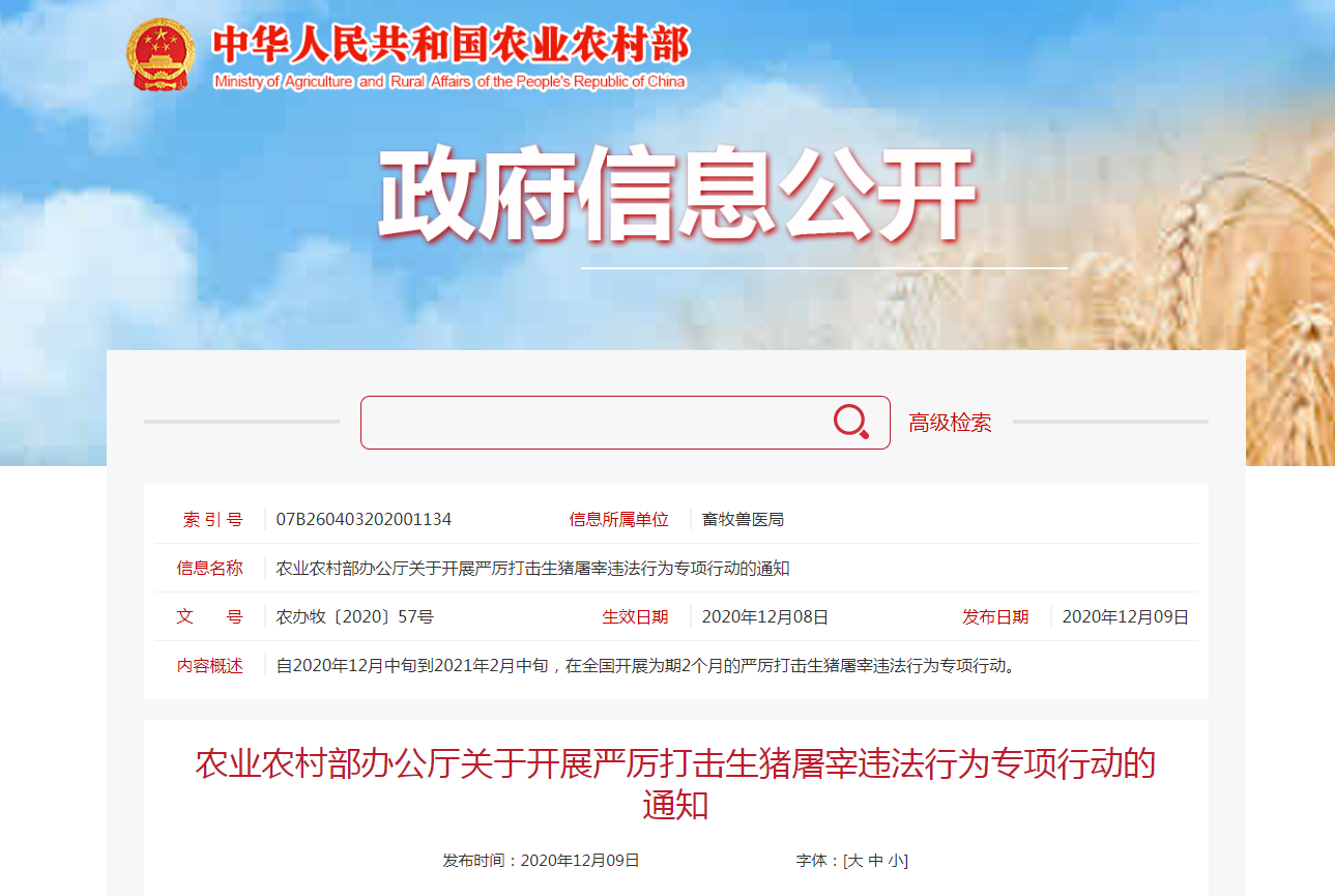各地要進一步提高政治站位,嚴守食品安全底線,充分認識專項行動的重要意義,深入貫徹落實《生豬屠宰管理條例》和《國務(wù)院辦公廳關(guān)于促進畜牧業(yè)高質(zhì)量發(fā)展的意見》要求,采取有效措施,確保專項行動取得積極成效。