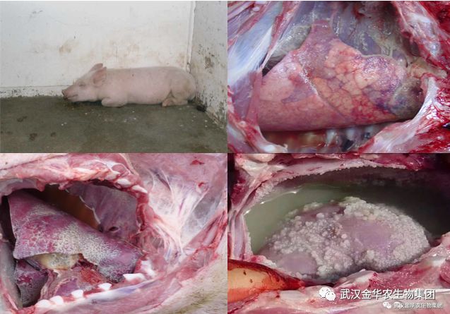 2、急性型:嚴(yán)重呼吸困難,呼吸特別費(fèi)力,有時(shí)張嘴呼吸,繼而體溫下降,窒息死亡。臨死前:鼻孔、嘴流出有泡沫血水。