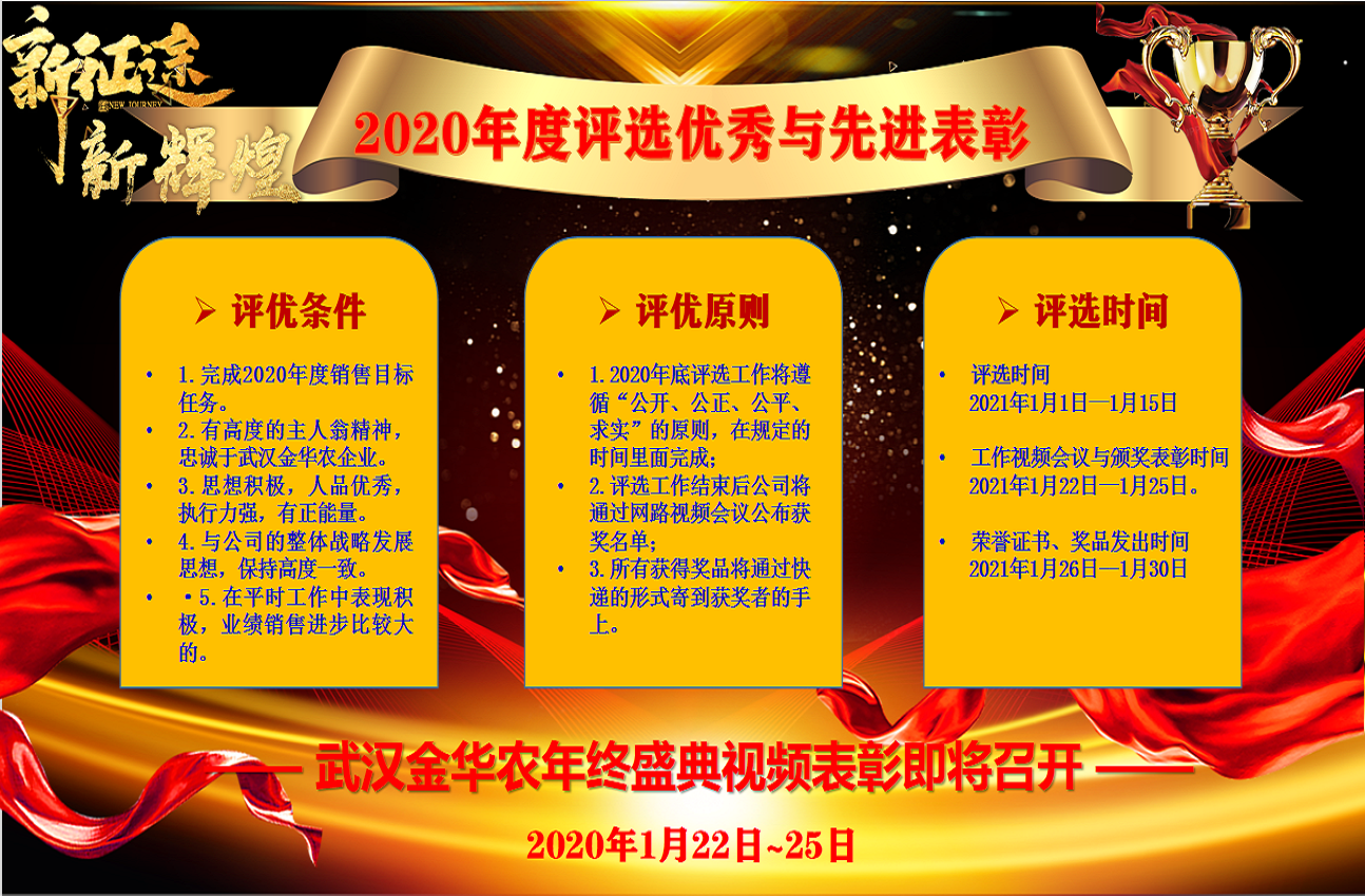 ? ? 2020年已經(jīng)圓滿勝利結(jié)束,在過去的歲月里,很多銷售經(jīng)理,克難奮進(jìn),勇于拼搏,取得了優(yōu)秀的成績,提前完成今年的銷售任務(wù)!在此,公司感謝他們的辛勤付出與努力拼搏!并號召全體武漢金華農(nóng)人向他們學(xué)習(xí),以他們?yōu)榘駱?,為他們驕傲和自豪?/span>