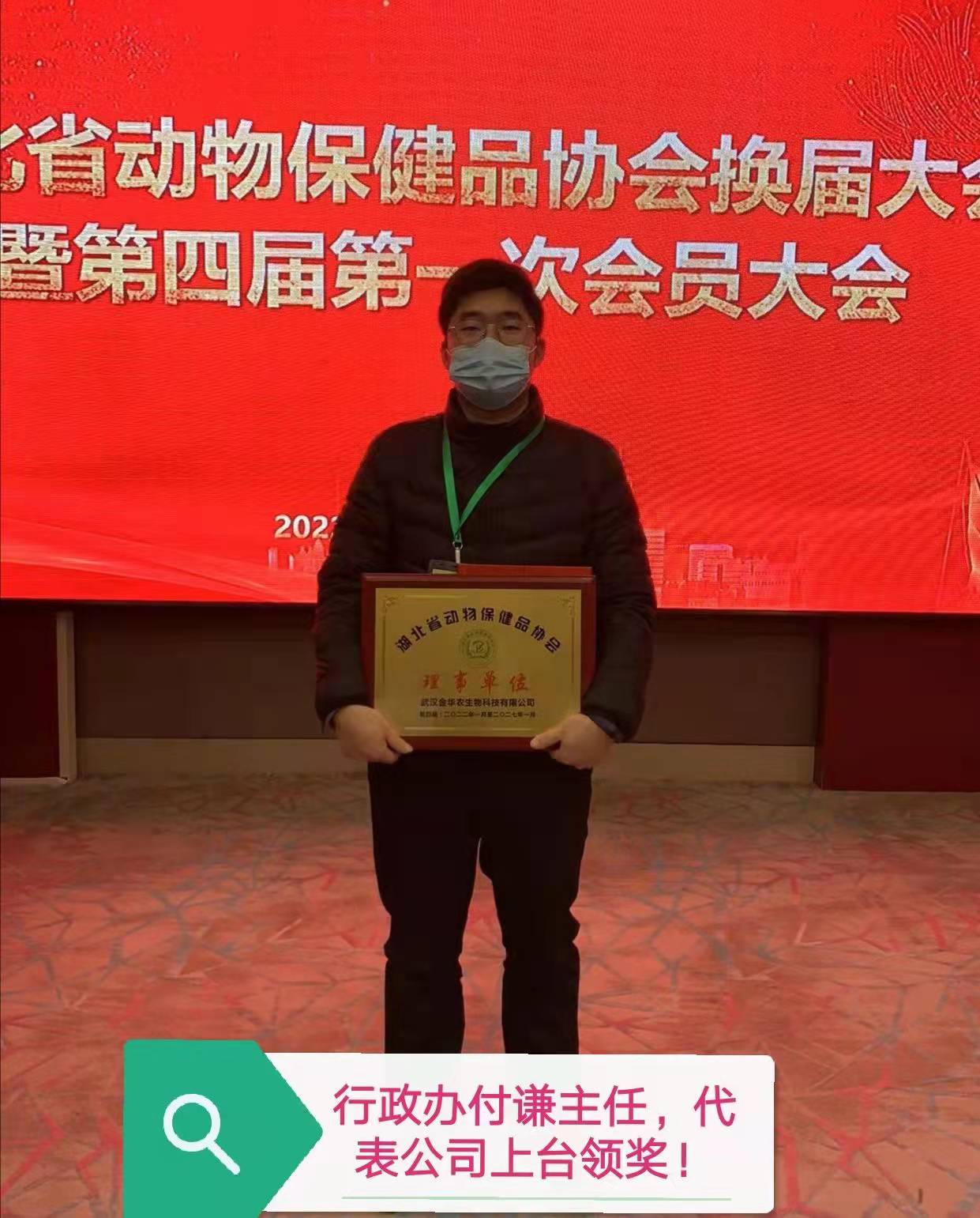 2022年1月19日,由湖北省農(nóng)業(yè)農(nóng)村廳、湖北省獸藥監(jiān)察所、湖北省動物保健品協(xié)會聯(lián)合舉辦的第四屆會員大會在武漢召開。湖北省民政廳朱亮處長、湖北省農(nóng)業(yè)農(nóng)村廳獸醫(yī)處何年華局長、副處長郭一、湖北省獸藥監(jiān)察所所長王峻、湖北獸藥監(jiān)察所副所長曾勇、湖北省動保協(xié)會會長畢丁仁出席參加本次交流會。武漢金華農(nóng)生物制藥作為湖北省優(yōu)秀典型企業(yè)代表之一受邀參會,喜獲“湖北省動物保健品協(xié)會理事單位”稱號。