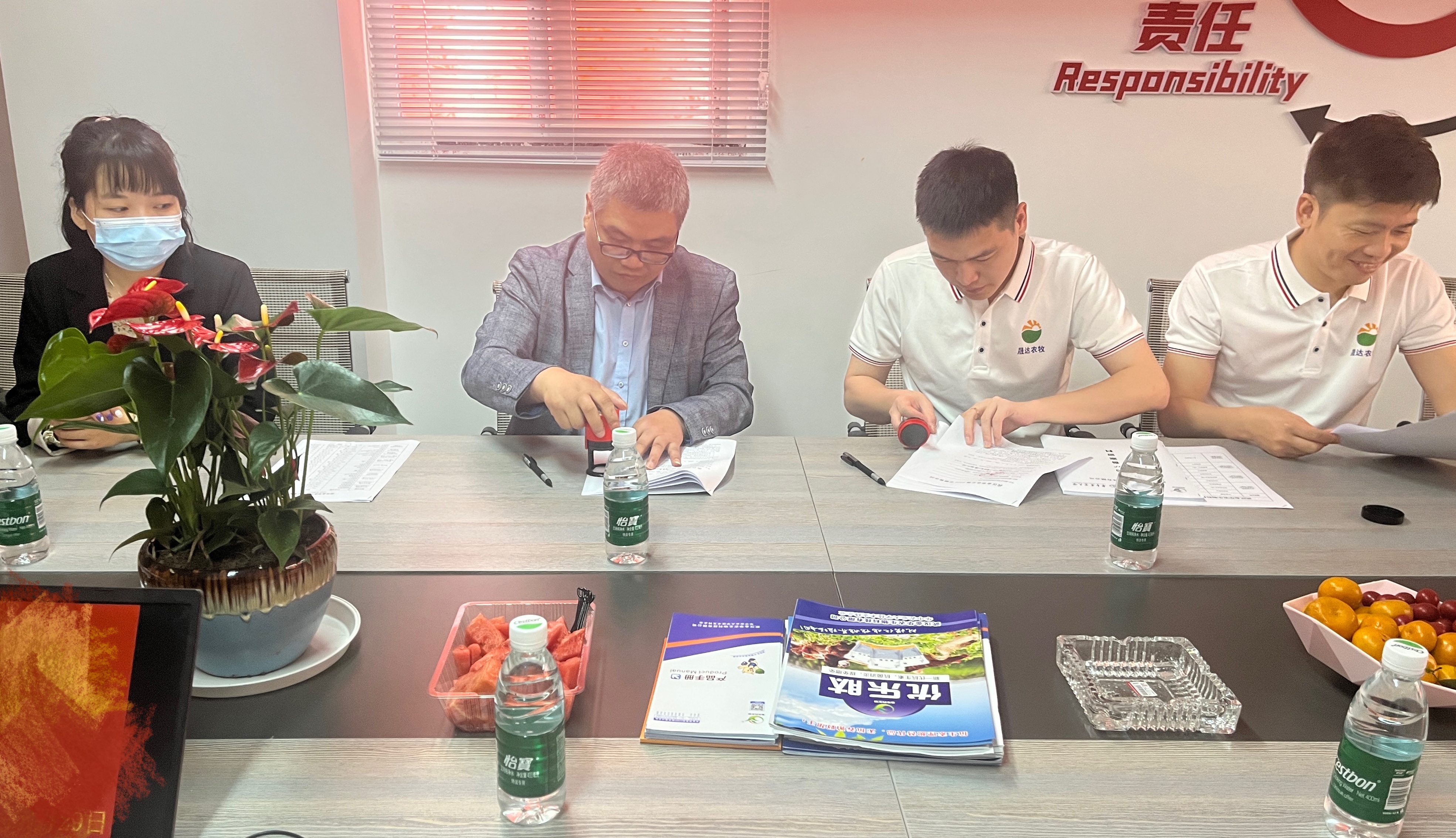 ? ? 武漢金華農(nóng)生物運(yùn)營(yíng)總監(jiān)郭昌盛、武漢金華農(nóng)生物行政辦付謙主任、武漢金華農(nóng)生物市場(chǎng)部宋博及武漢金華農(nóng)生物企劃部李丹彤參與見證了簽約儀式,晟達(dá)農(nóng)牧集團(tuán)全體員工也共同見證了簽約儀式。此次合作打開了集團(tuán)強(qiáng)強(qiáng)聯(lián)合的新篇章,共謀發(fā)展的戰(zhàn)略新高度,培育好動(dòng)保產(chǎn)業(yè)發(fā)展的新業(yè)態(tài),為推進(jìn)合作邁出更大步伐添薪續(xù)力。