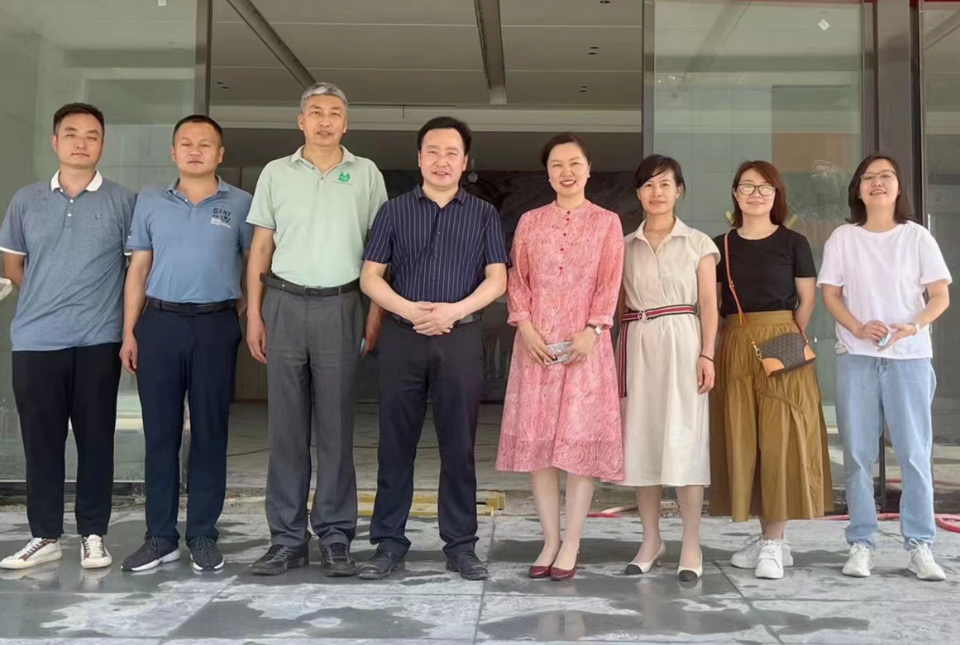▲華中農(nóng)業(yè)大學(xué)校友辦楊仁海主任(左三)、教育培訓(xùn)學(xué)院趙慧院長(右四)一行蒞臨我司參觀考察