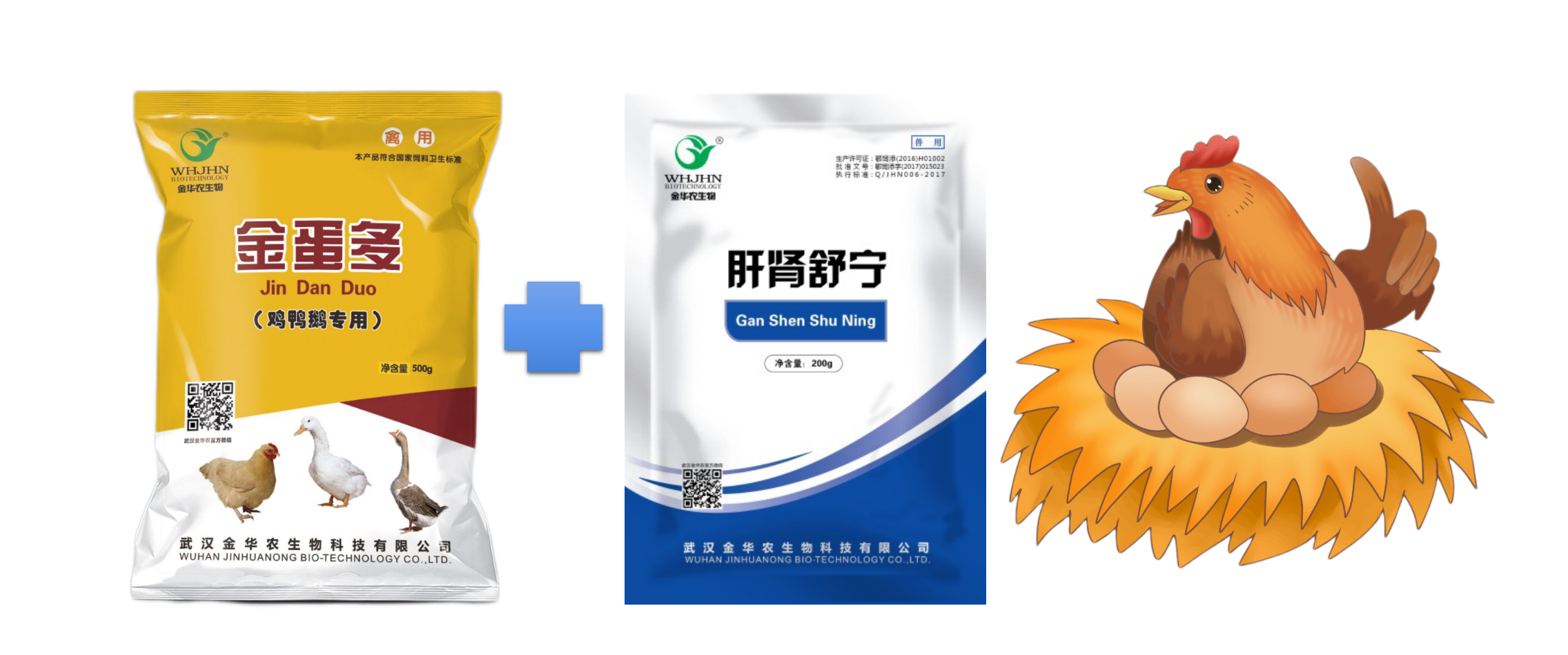 金蛋多500g+肝腎舒寧500g,拌料1000斤或飲水1500斤,連續(xù)7~10天,提高產蛋率,使蛋禽羽毛光亮、色澤鮮艷、禽冠紅潤,防治打架、啄羽啄肛、驚厥狂躁癥狀發(fā)生,少生病、效果明顯。