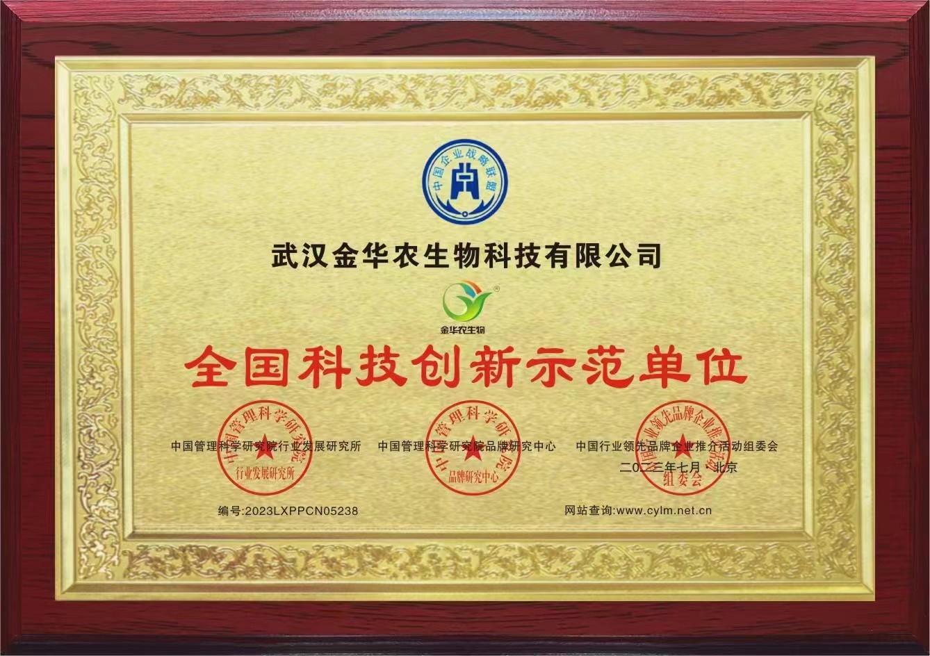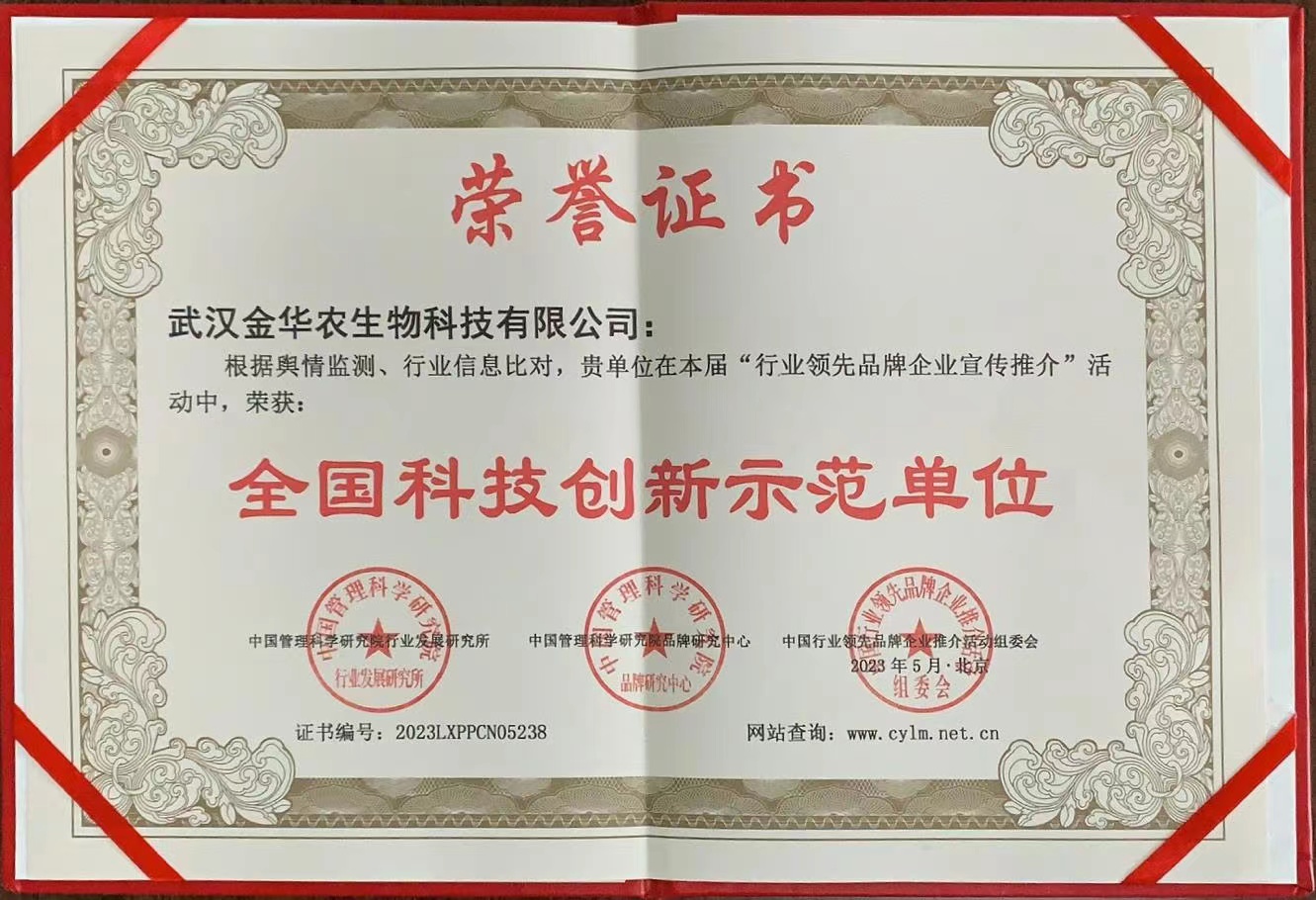 近日,中國科學(xué)研究院行業(yè)發(fā)展研究所、中國科學(xué)研究院品牌研究中心、中國行業(yè)領(lǐng)先品牌企業(yè)推介活動組委會等多家單位聯(lián)合舉辦了“行業(yè)領(lǐng)先品牌宣傳推介”活動,武漢金華農(nóng)被評為“全國科技創(chuàng)新示范單位”。這是繼國家科學(xué)技術(shù)部頒發(fā)我司“湖北省科技創(chuàng)新型企業(yè)”榮譽后的又一次榮譽表彰。