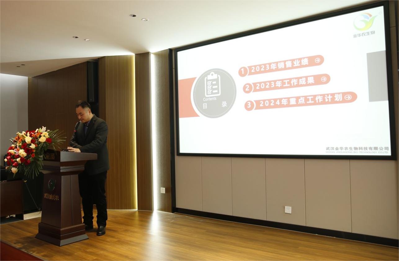 ? ? ? ?辭舊迎新、筑夢前行,2024年1月9日~12日,武漢金華農(nóng)生物科技有限公司2023年度工作總結(jié)暨優(yōu)秀表彰大會在公司行政大樓報告廳隆重舉行。來自華中農(nóng)業(yè)大學的院系領導和專家教授、省獸藥監(jiān)察所行業(yè)主管負責人、公司領導及部門主管、近30個省市的市場精英代表逾百人齊聚盛會。