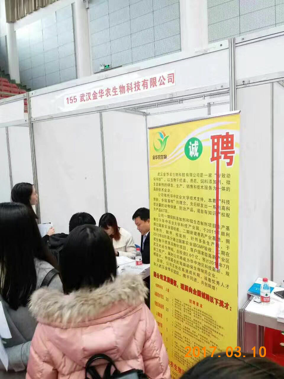 3月10日,武漢金華農生物應邀參加華中農業(yè)大學春季畢業(yè)生供需見面會。隨著公司規(guī)模進一步擴大,發(fā)展步伐進一步加快,原有規(guī)模不能滿足公司發(fā)展,增設部門和擴充人手勢在必行。武漢金華農提供的多個崗位受到華農學子的熱烈追捧,爭先恐后前來咨詢和面試,競聘各種崗位。經過現場面試和篩選,公司在本次招聘會上收獲人才頗豐!