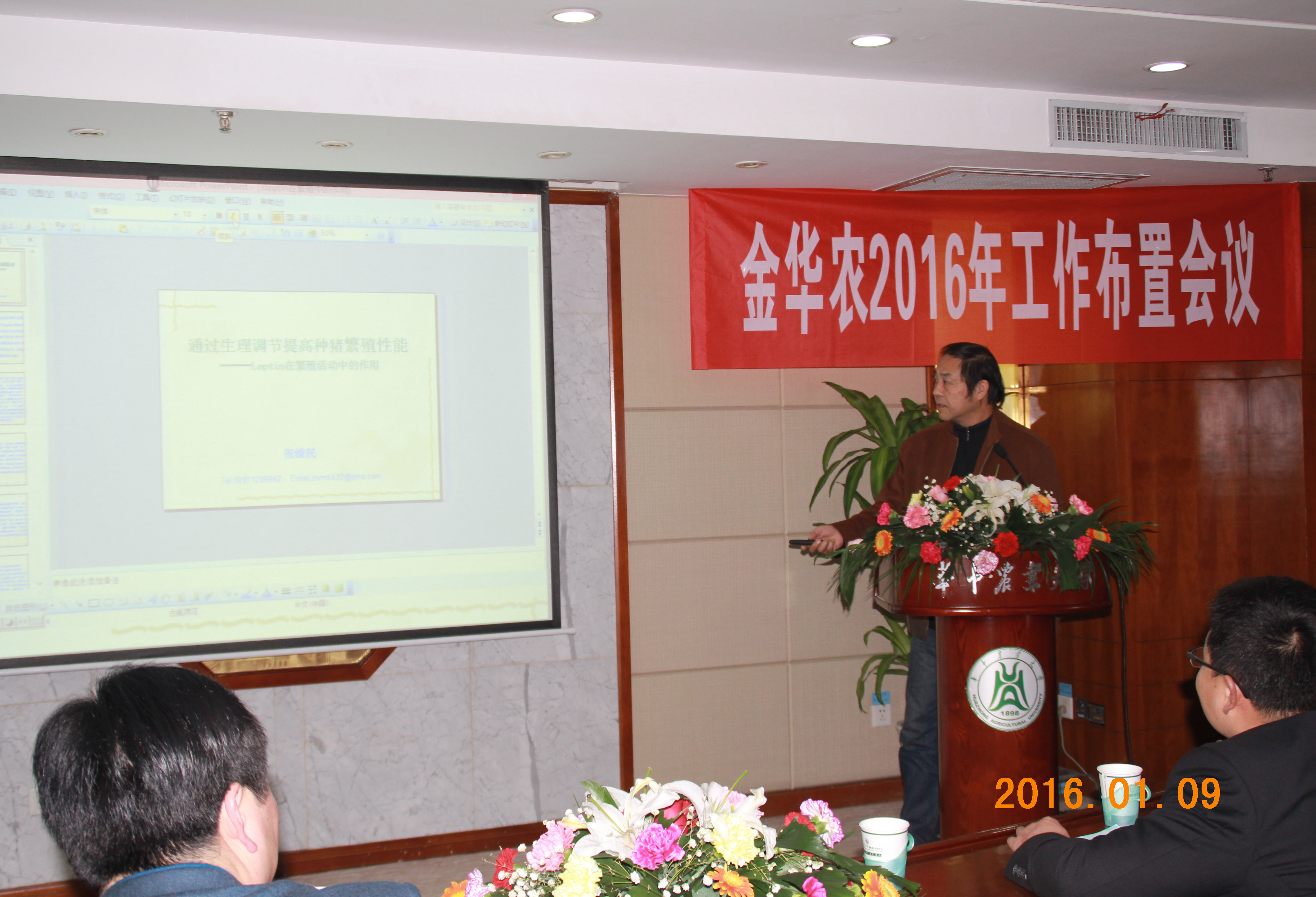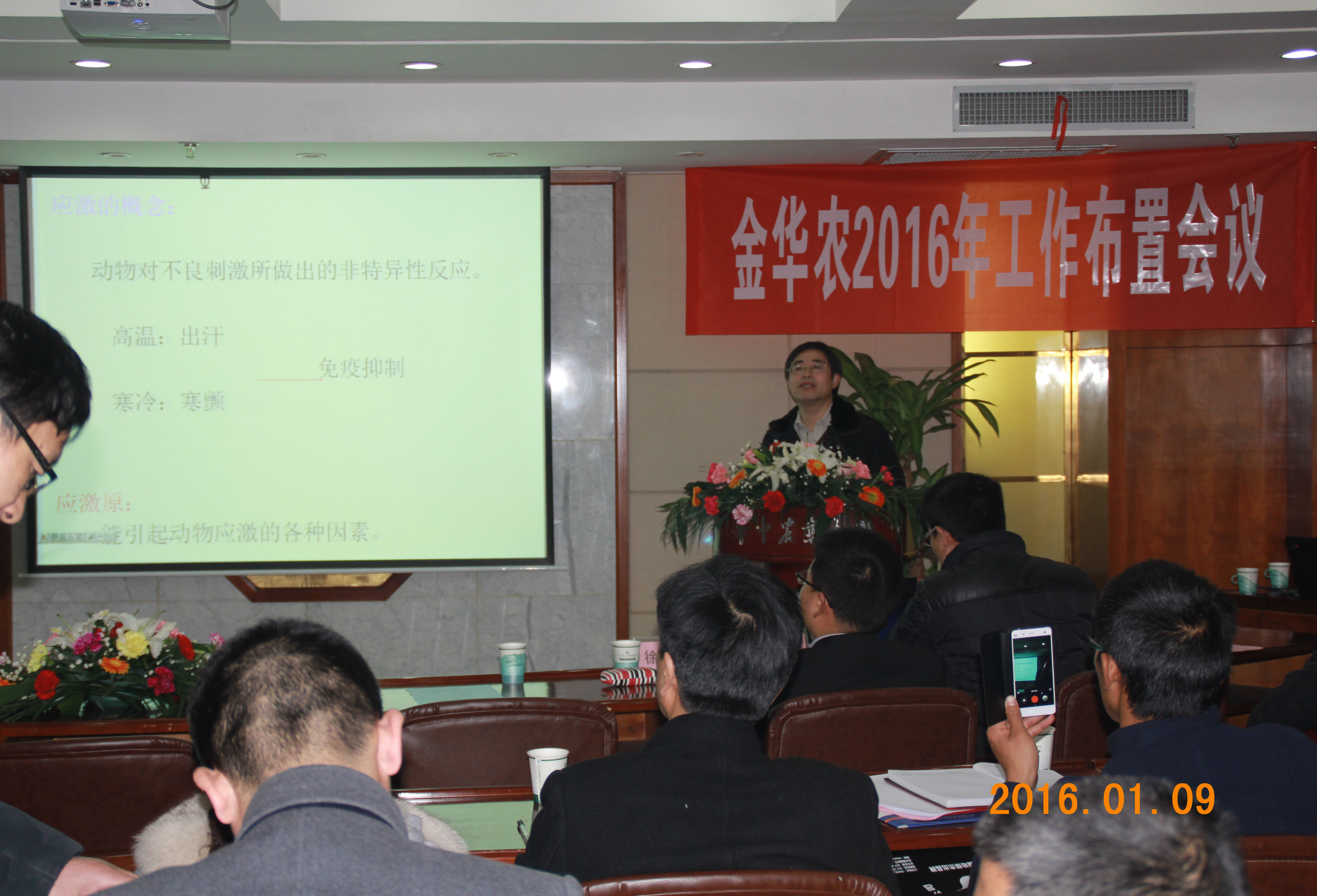 張維民教授講課中說:我是第一次參加武漢金華農生物科技有限公司年終工作會議,很是榮幸能夠為金華農團隊授課,富總給我布置這個課題,我倍感壓力,總希望能給大家?guī)睃c新鮮的知識與幫助!我今天充分感受到了金華農的團隊精神,堅強的凝聚力,必勝的信念!也感受到了金華農公司的不一樣,我很是由衷的高興,祝福金華農公司在富總的帶領下,越來越好!2016年再創(chuàng)輝煌!