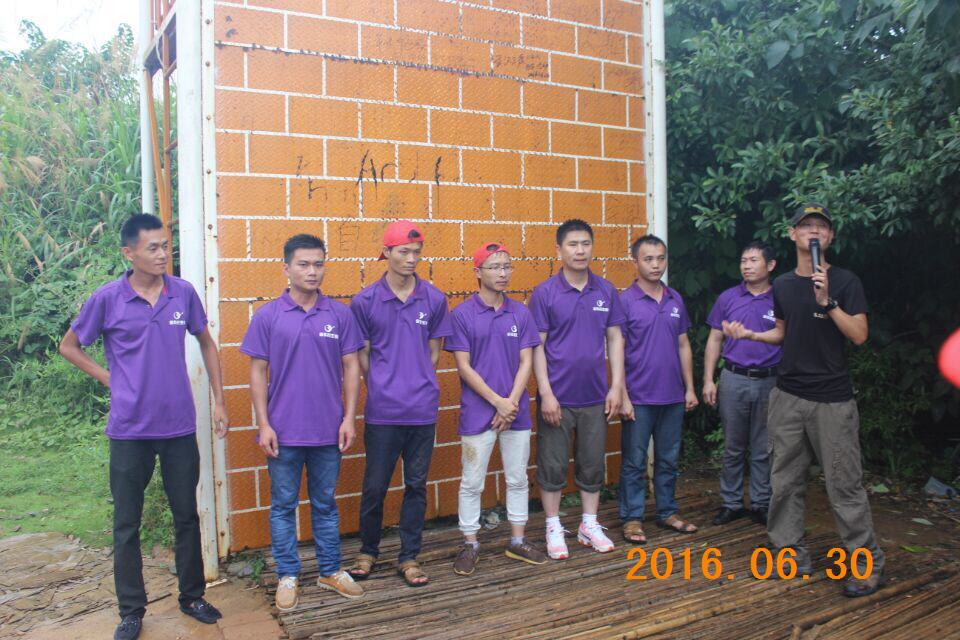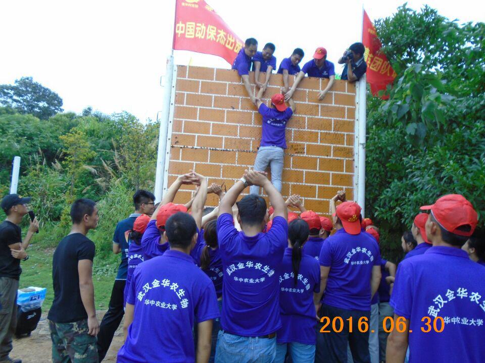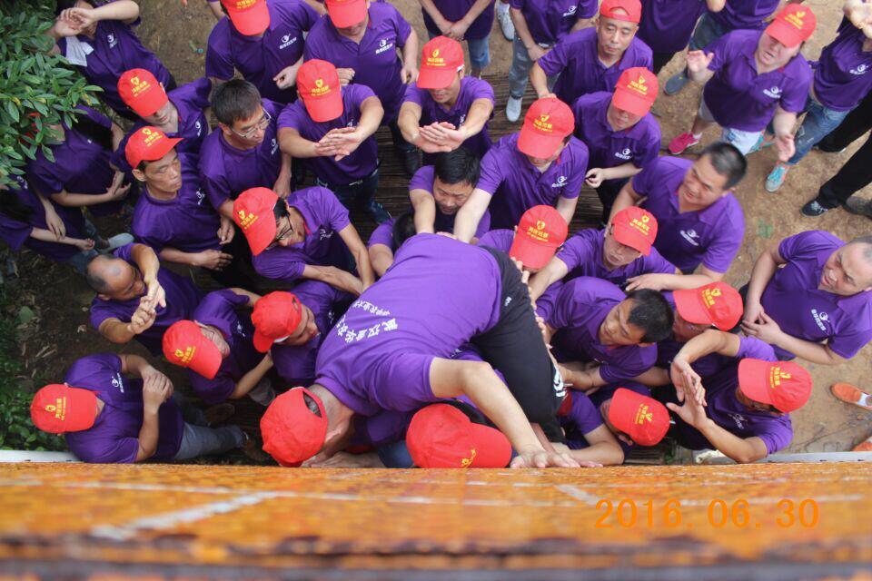 “金華農(nóng),加油!金華農(nóng),加油!金華農(nóng),必勝!金華農(nóng),必勝!……”踏著李奔、陳維利、劉傳忠、曹玉廣、唐友琦、王海峰、陳進(jìn)調(diào)組成的第一層、第二層“人梯”,我們的團(tuán)隊(duì)開始往上爬,風(fēng)雨交加,墻面很滑,踩過(guò)兩道“人梯”,公司綜合辦主任黃凡第一個(gè)躍過(guò)墻面,回過(guò)頭來(lái),他開始構(gòu)建“頂層”防線,一個(gè)、兩個(gè)、三個(gè)……越來(lái)越多的人在隊(duì)友的幫助下,成功翻越,我們的目標(biāo),是不落一人。