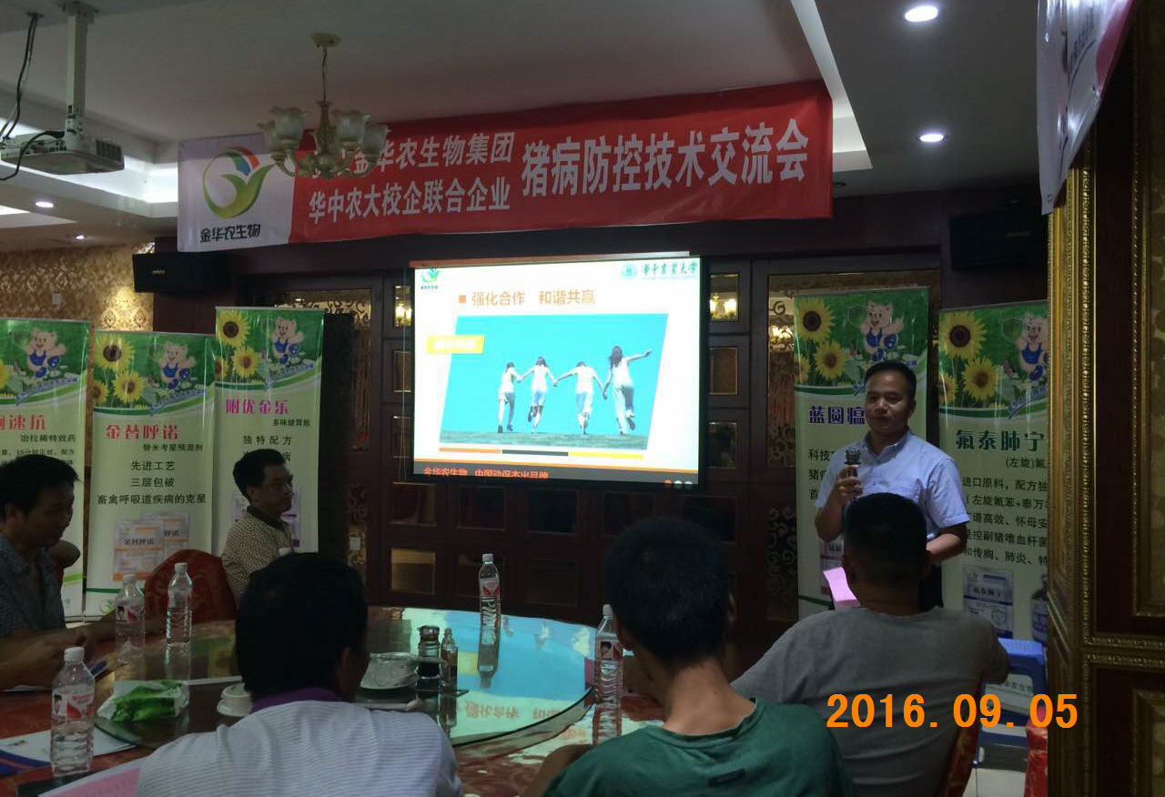 2016年9月5-6日,武漢金華農(nóng)生物科技有限公司“夏秋季常見易發(fā)豬病研討會”在福建南平勝利召開,按公司預(yù)定計劃、陸續(xù)在全國重點(diǎn)省內(nèi)全面展開。公司常務(wù)副總經(jīng)理徐巍博士、公司運(yùn)營部主管李名娥老師等人出席本次會議,會議主講由公司技術(shù)部吳志良老師領(lǐng)銜主講,南平地區(qū)戰(zhàn)略合作伙伴魏總負(fù)責(zé)會議主持、組織與策劃,南平地區(qū)大區(qū)經(jīng)理張老師負(fù)責(zé)會前會后全程跟蹤與回訪。