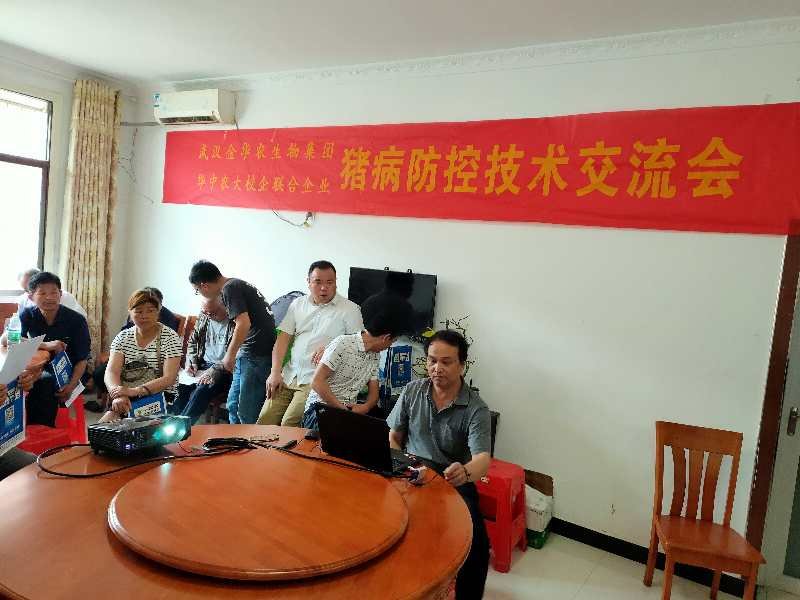 2019年5月27日,武漢金華農(nóng)生物集團(tuán)應(yīng)湖南衡陽畜牧局主管單位邀請,在湖南衡陽衡東縣成功舉辦豬病圓桌交流會議,與會養(yǎng)豬戶30家,反饋效果明顯,現(xiàn)場訂貨積極,會議氣氛友好而熱烈。湖南衡陽衡東縣戰(zhàn)略合作伙伴彭總出席參加本次會議。