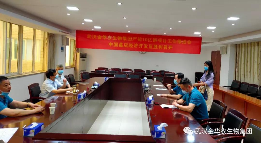 ? ? ? 本訊站(黃甜、雪琴)2020年5月22日上午,武漢金華農(nóng)生物集團(tuán)投資3億元、產(chǎn)能達(dá)10億新項目推進(jìn)會在葛店經(jīng)濟(jì)開發(fā)區(qū)召開,政企雙方緊密聯(lián)動,共促復(fù)產(chǎn)擴(kuò)面新發(fā)展。