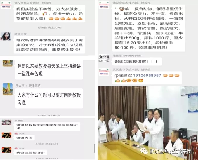 公司技術研發(fā)部:姚教授、趙教授,甘于幕后,辛勤耕耘,利用工作之余進行微信群講課的方式給全國市場客戶排憂解難,獲得市場客戶的一致好評,在疫情特殊時期,遠程微信群講課無疑是最好的技術分享方式,以精彩的內(nèi)容,獨具一格的講課方式在特殊時期堅守在崗,為眾多養(yǎng)殖戶解答疑難,分享最有效的養(yǎng)殖常識和治療方案;姚教授還根據(jù)市場客戶的需求,定期更新講課課件,獲得了越來越多客戶的高度贊美和認可!